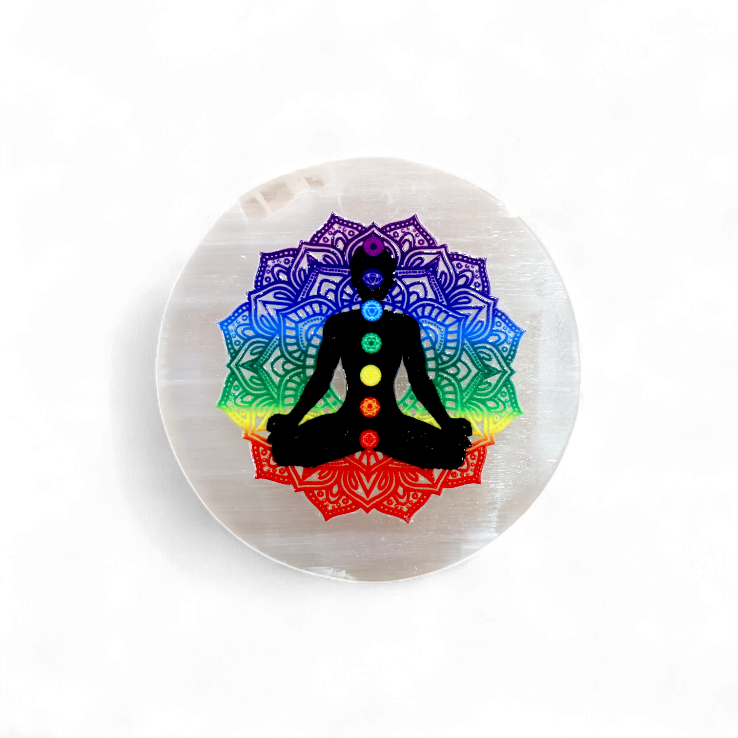 the 7 Chakra Meditation Selenite Plate in your meditation area,