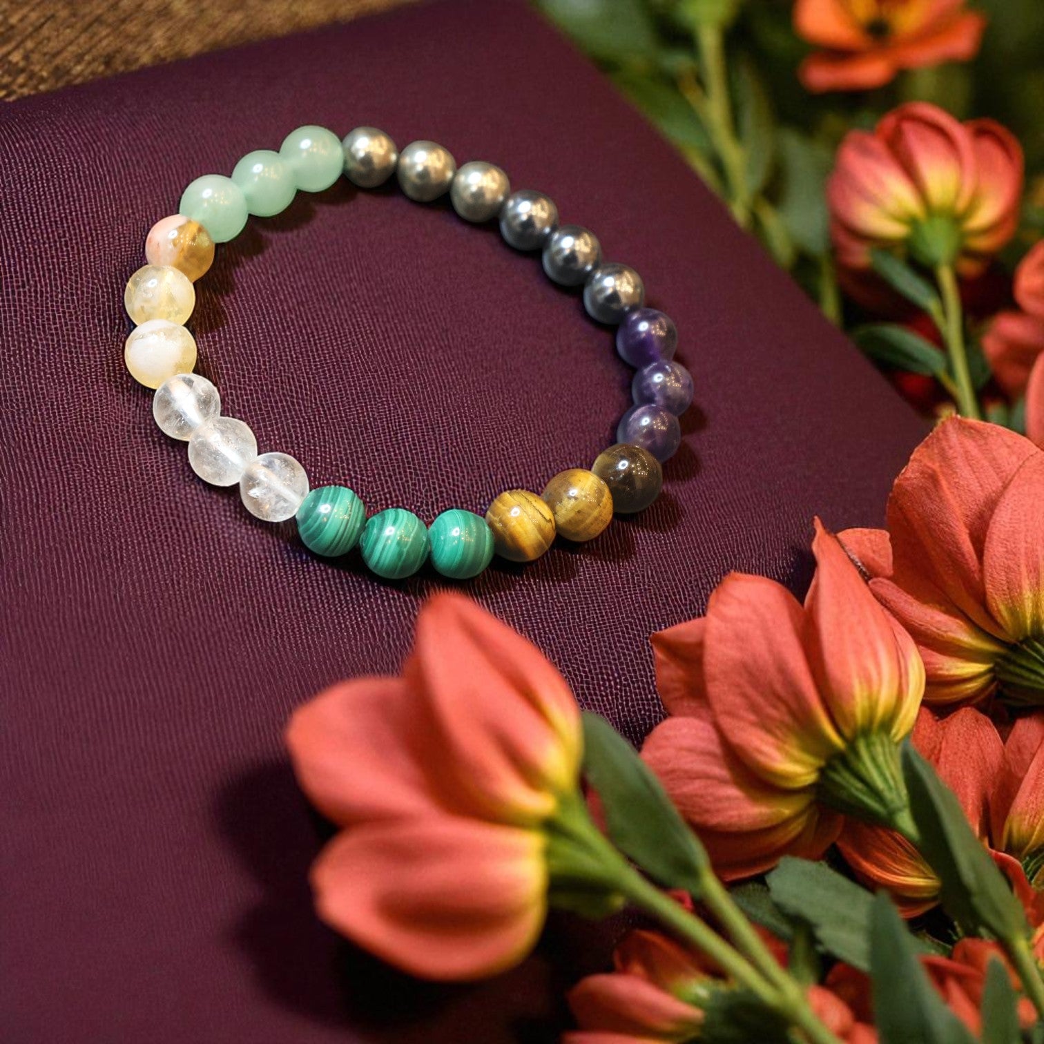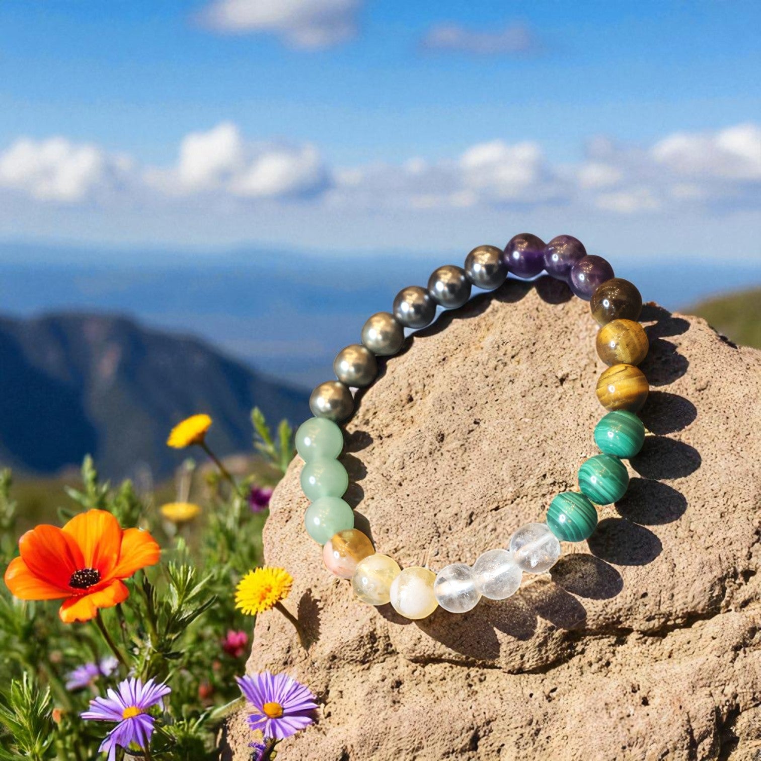 Made with handpicked natural stones like Yellow Sapphire, Emerald, Citrine, Pyrite, Green Aventurine, and Tiger Eye, this bracelet supports your career growth, business success, and financial decisions while neutralizing obstacles.