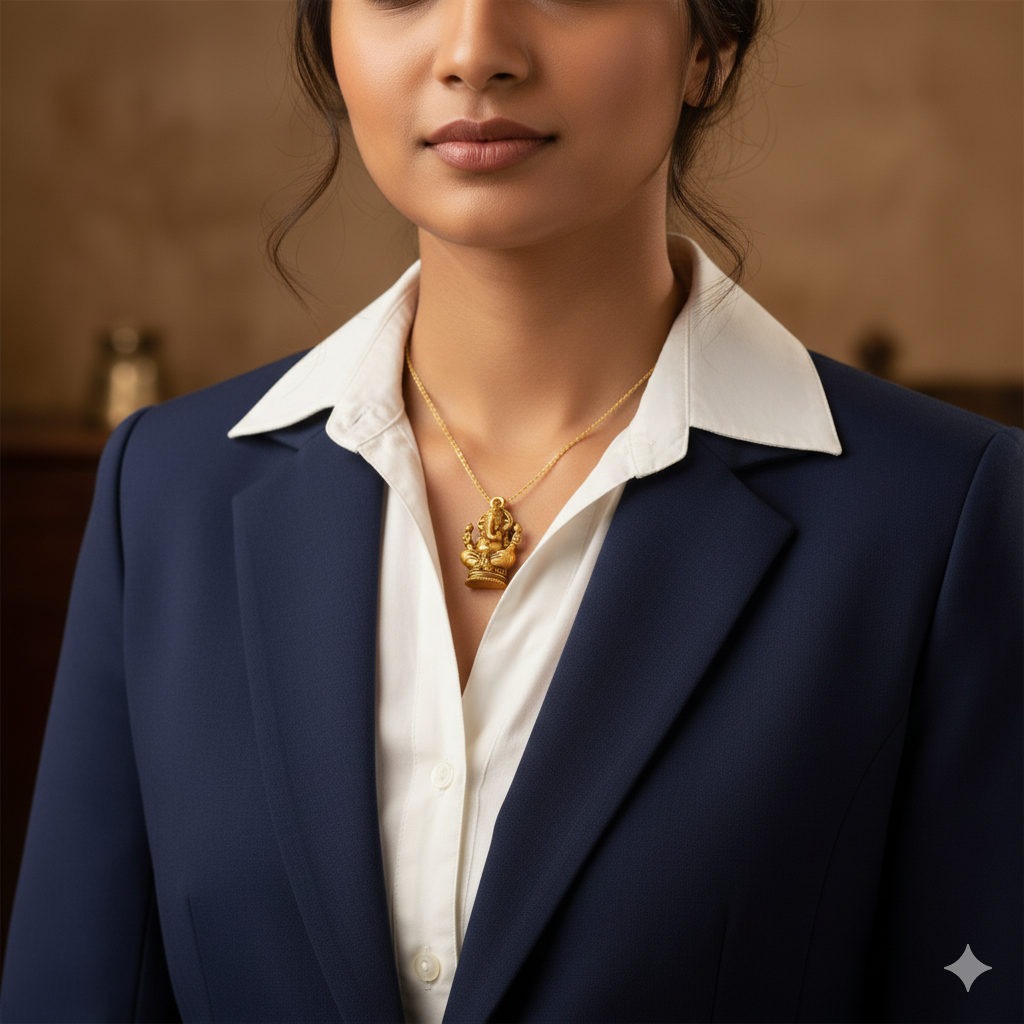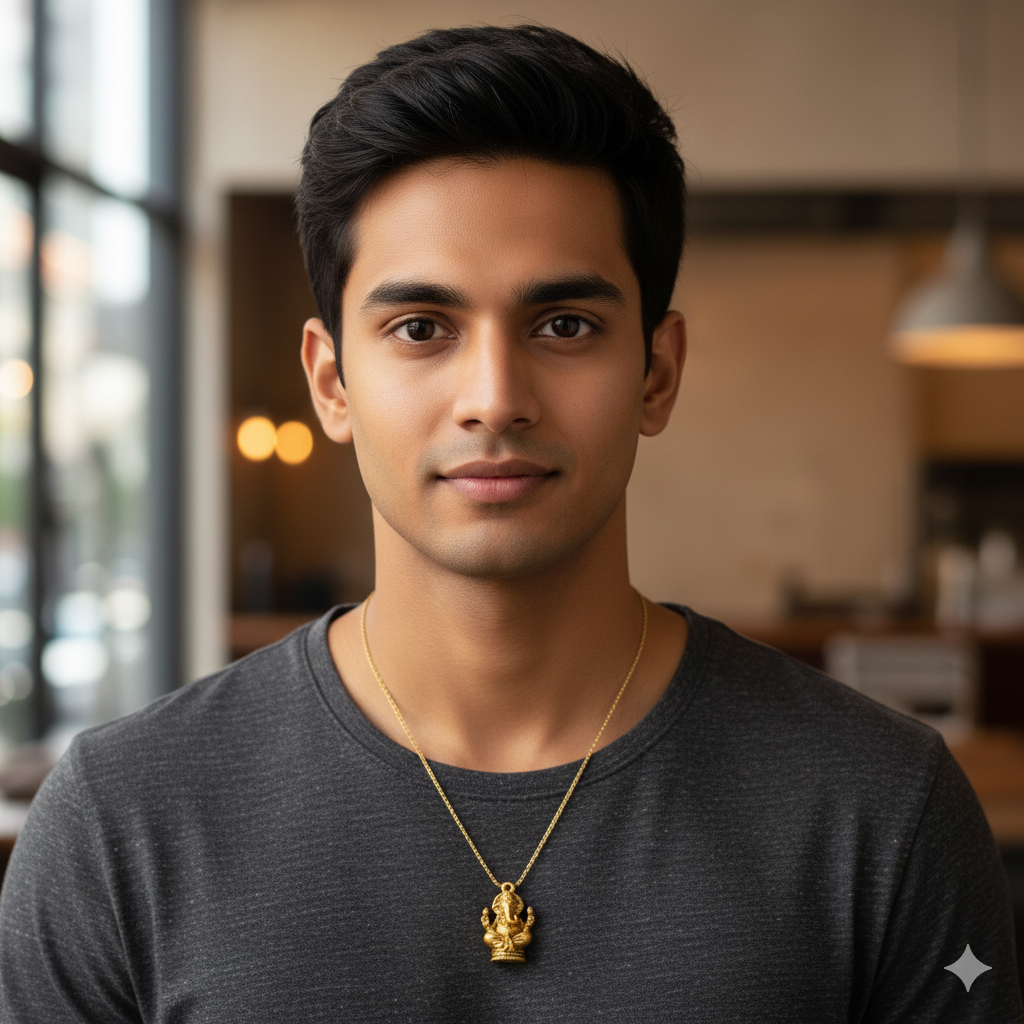 The Ganesh Gold Pendant is a beautifully crafted, premium-quality pendant featuring Lord Ganesha, the remover of obstacles and the harbinger of success, wisdom, and prosperity.