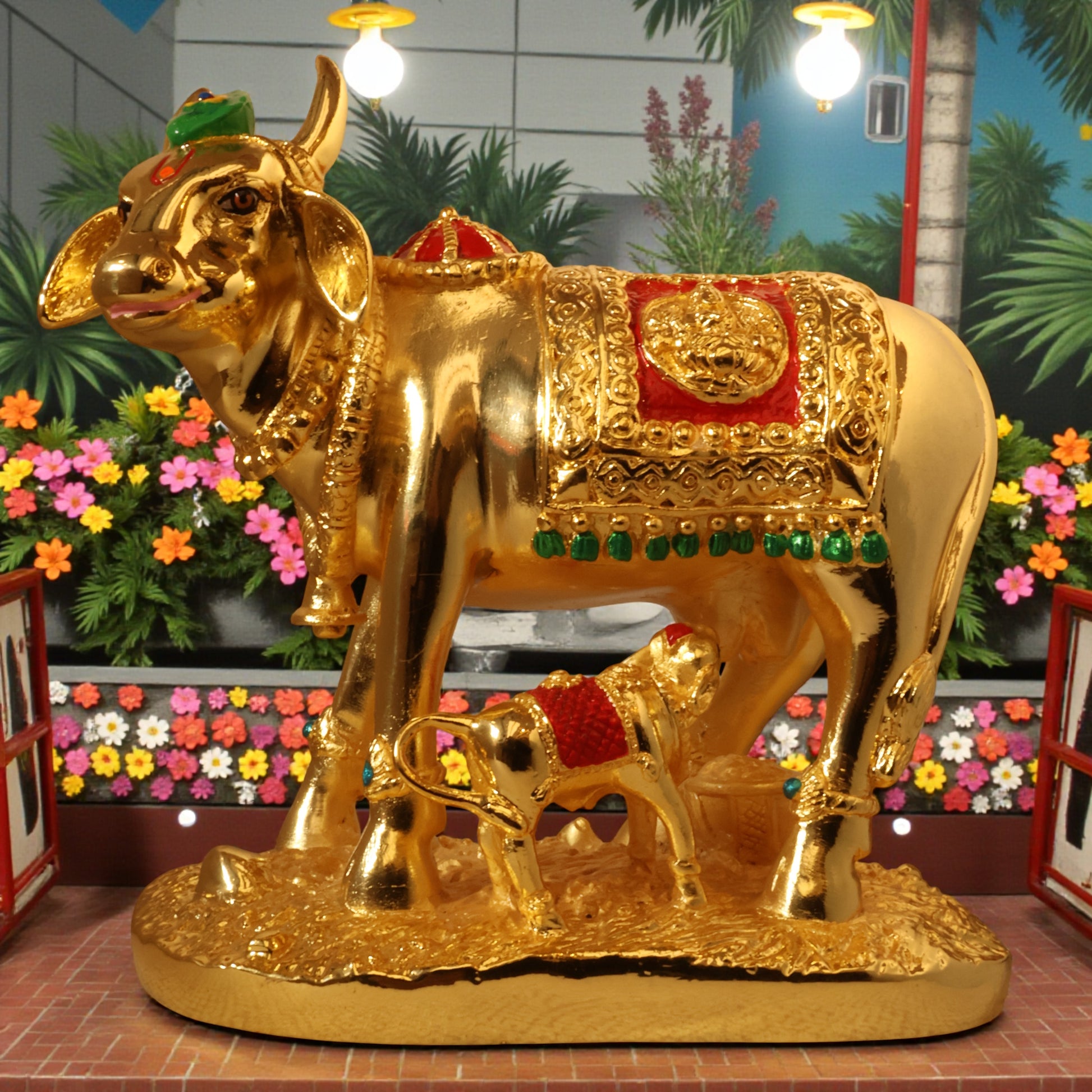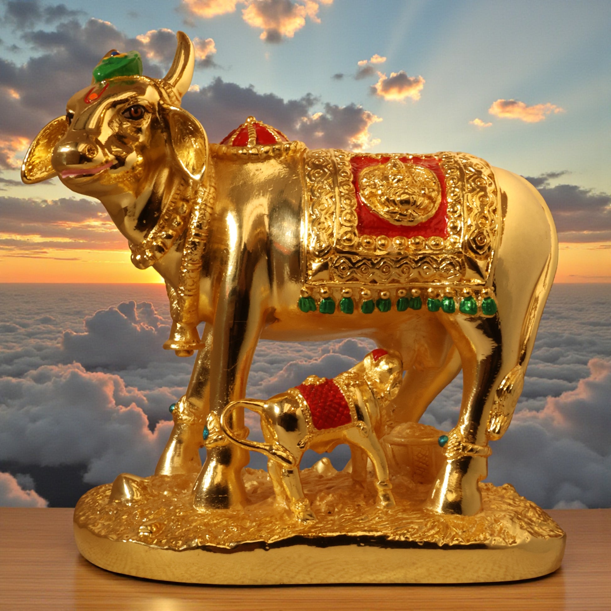 Kamdhenu Cow with Calf | Gold Plated