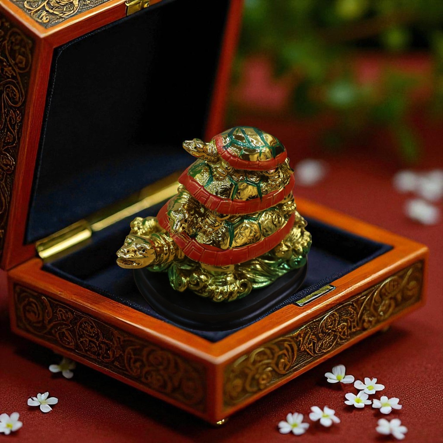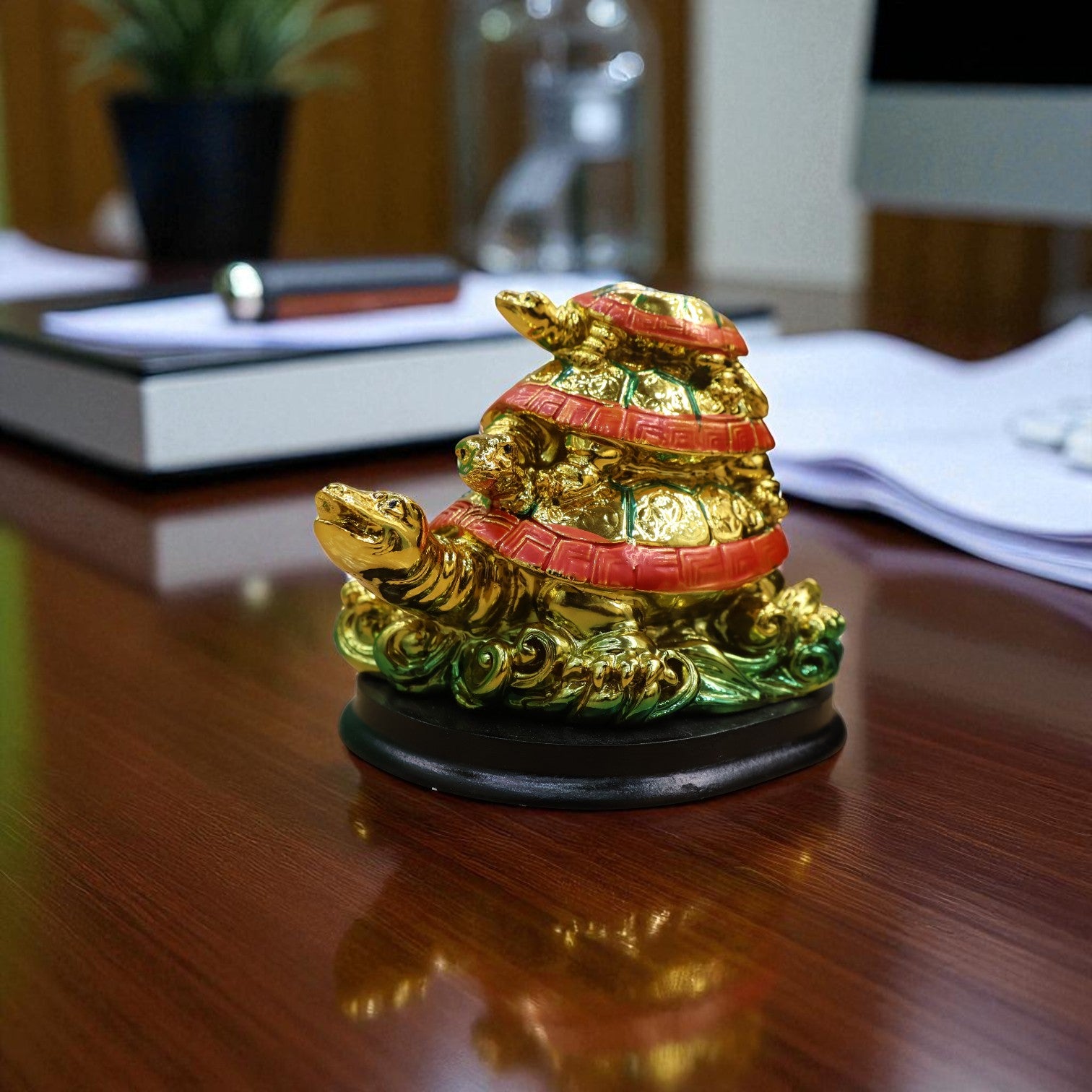The Triple Tortoise (Turtle) Family is a powerful Feng Shui symbol believed to bring longevity, health, stability, and family harmony. It usually depicts three tortoises stacked on top of one another—a mother, child, and baby—representing protection through generations.
