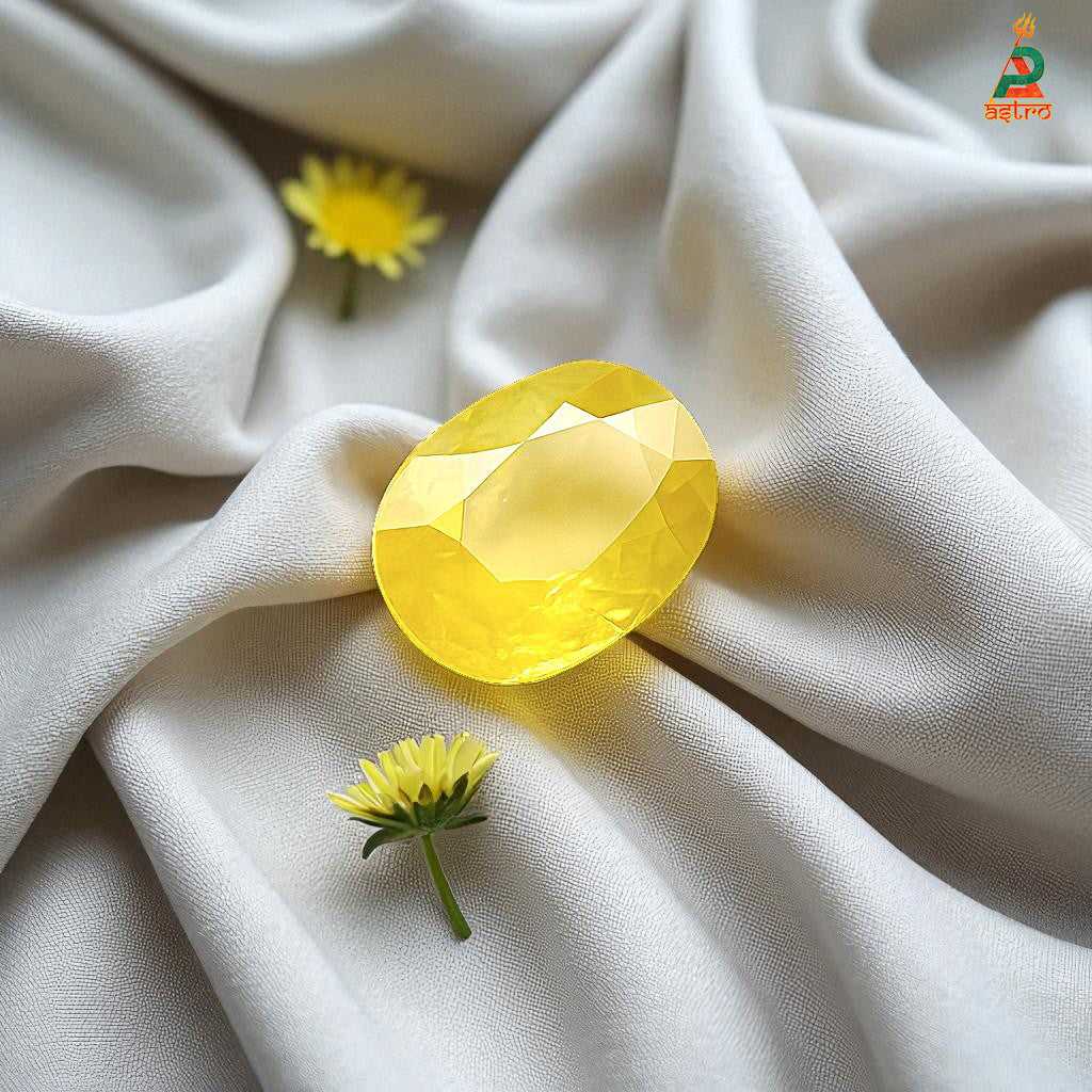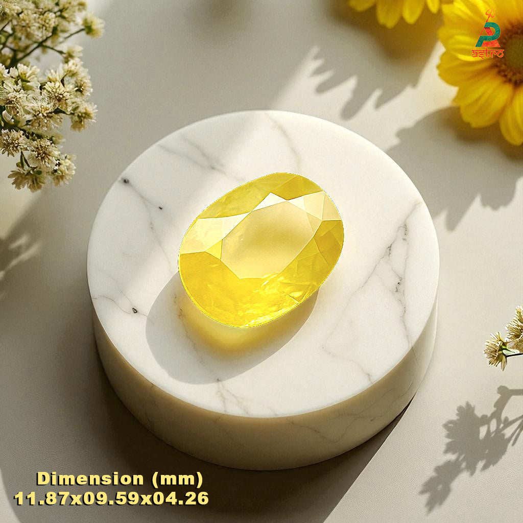 Yellow Sapphire, also known as Pukhraj, is one of the most auspicious and powerful gemstones in Vedic astrology. Ruled by Jupiter (Guru) – the planet of wisdom, wealth, and divine knowledge – this stone brings abundance, good fortune, and marital harmony. It is especially recommended for those seeking clarity in decision-making, career growth, and blessings in married life.
